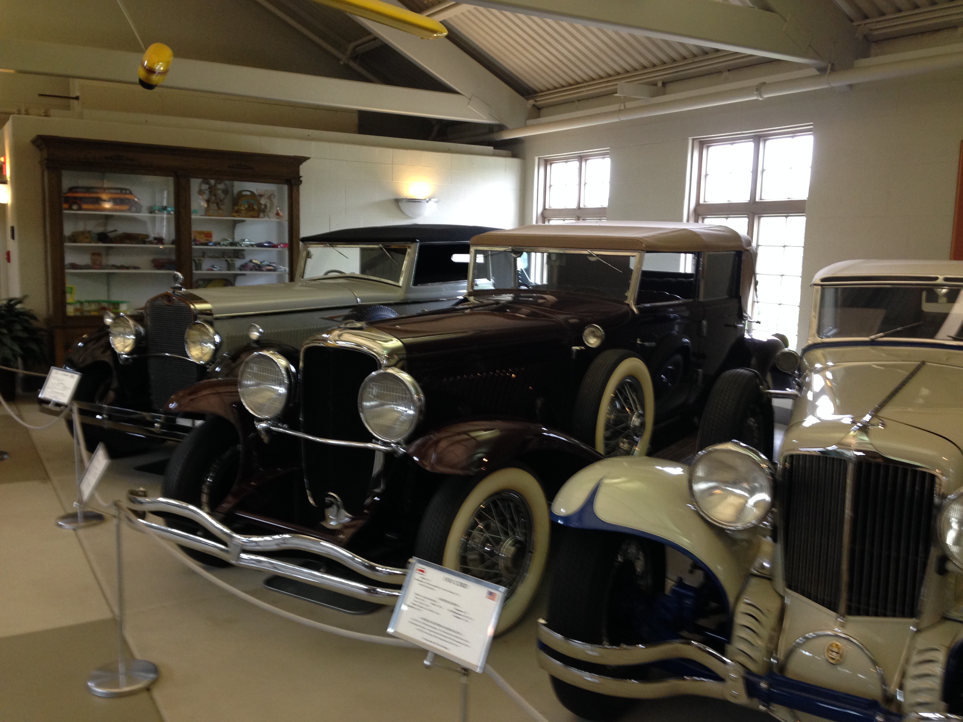 We lingered at the Blue Herron Inn for breakfast with John and Lois Diedrich, Craig’s good friends who so graciously hosted us on Tuesday evening. John decided to be our personal tour guide in a visit to Laporte County Historical Museum, home of the Kesling Auto Collection, an incredible collection of guns for the 1800’s and early 1900’s, and artifacts from the history of the area. My favorite was the Dusenberg. I was impressed that the engine developed 265hp.