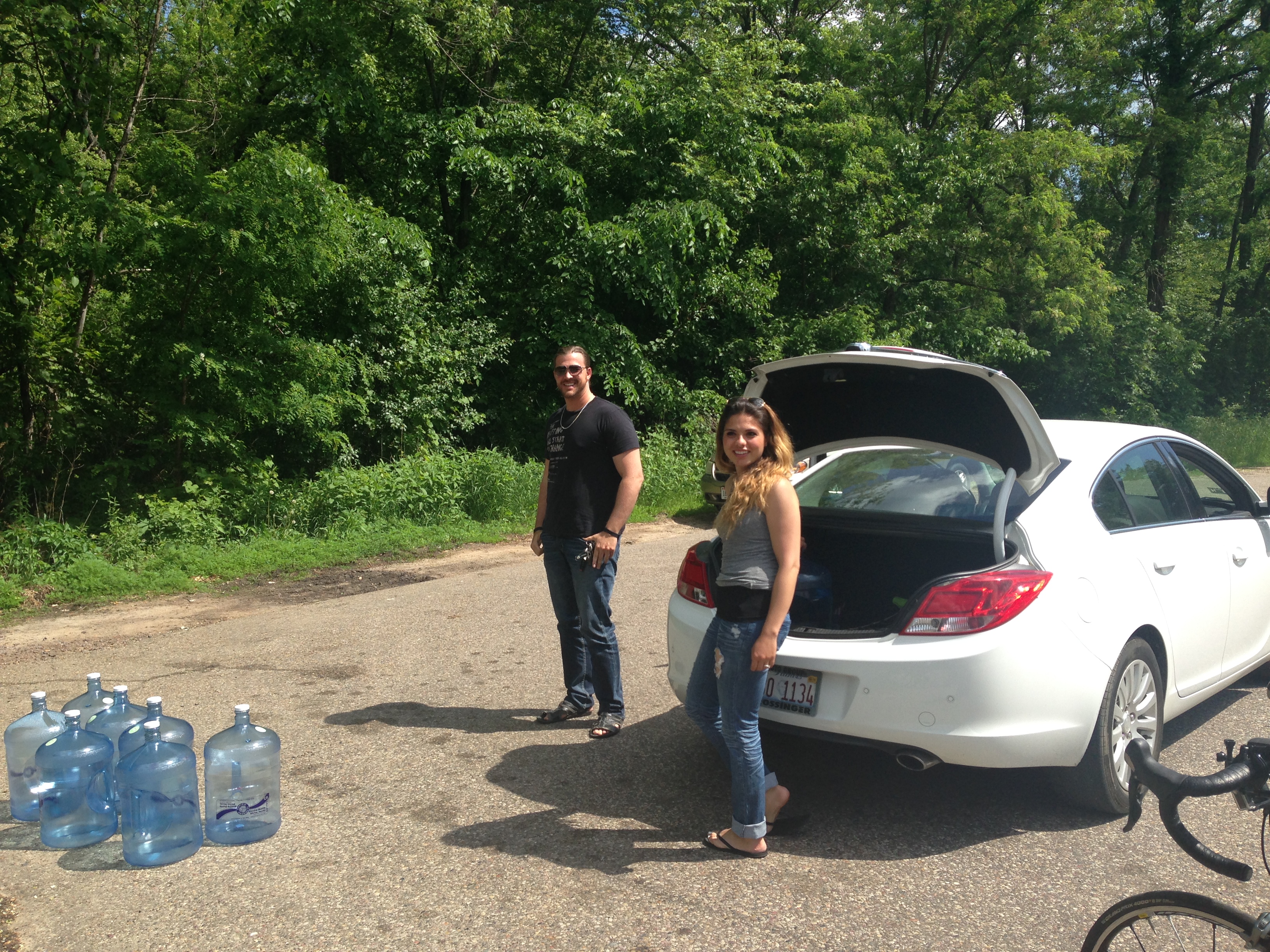 Friday (Day 20)-We awoke to another beautiful day. Alan reminded me this was June 6, D-Day 70 years ago. He wore a bike shirt, “Honor the Fallen”. We enjoyed some unusual geology in Wisconsin along the route from Columbus to Wonewac some 82 miles. Besides the unusual rocks that only a geologist or geotechnical engineer would truly appreciate, we stumbled across an artesian well. Local people were lined up getting the water, some of whom had been drinking it for decades. Apparently the owner across the street bottles the water for sale, but has this tap open to the public.
