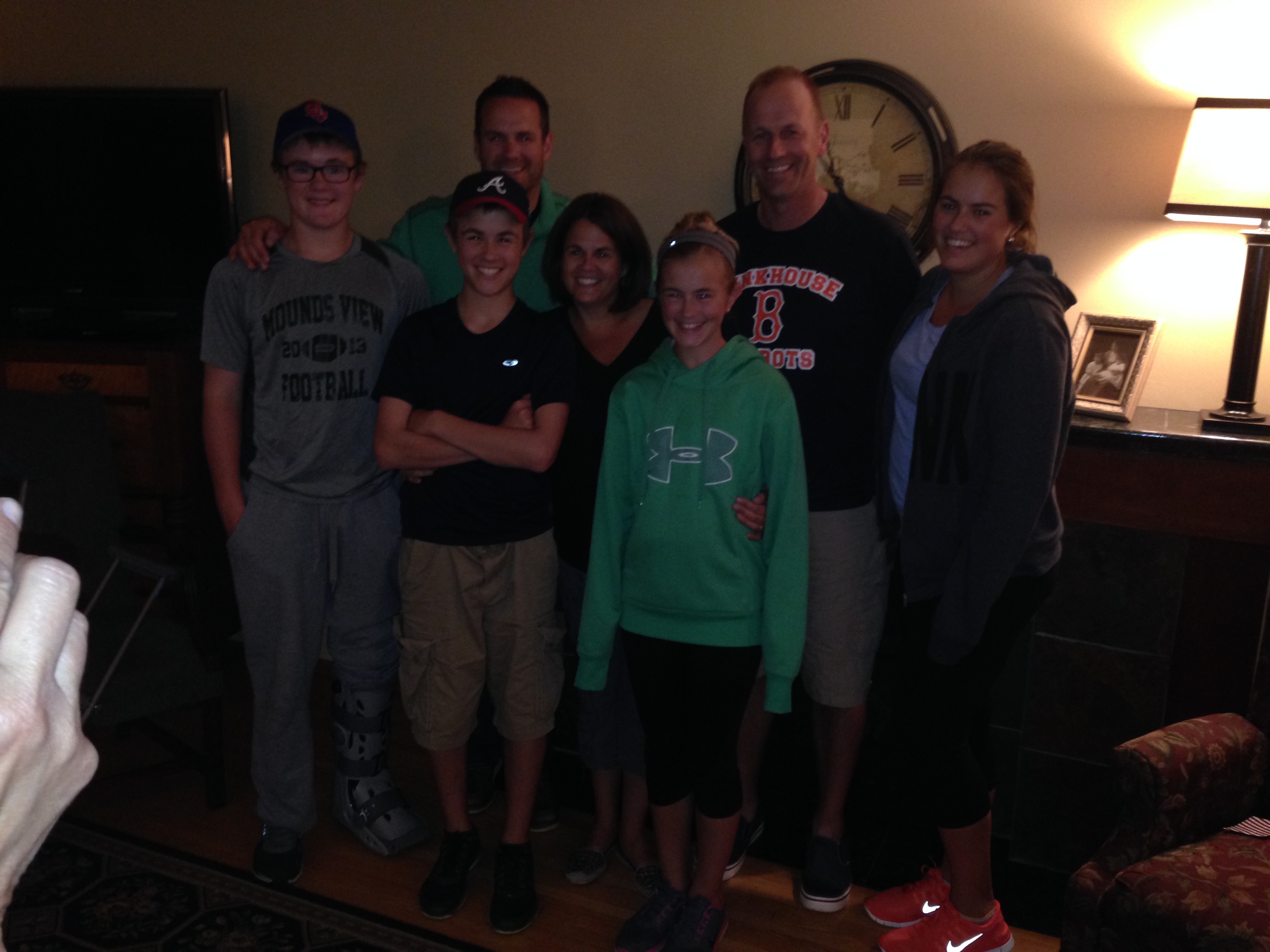 On Sunday we left the campground at Houston, Minnesota and journeyed with some tailwind on a crystal clear morning towards central Minnesota. I was surprised at the natural beauty of Southeastern Minnesota along the Root River. We were so captivated by our ride we missed a turn. We planned a 95 mile day to the intersection of I-35 and State Route 30 about 90 miles south of Minneapolis. However, the missed turn ended up costing us about 18 miles. After recalibrating, taking a trail for about 10 miles up a mountain, and pedaling more hours than normal we ended up doing a 112 mile day. Frankly, we have been fortunate in not taking too many wrong turns for long. Today’s turn was all part of the journey. Wasn’t planning to do a 112 mile day, but having to do it gives us confidence for the future that we can. About 22 miles prior to the end of the day’s journey, we stopped in Hayfield and a combo café/bowling alley. Some folks were sitting around the bar who were totally enamored that we were riding to Seattle. One elderly lady named Donna, got up to leave and came over and gave me a high five. I have never been high fived by a 75 year old, but she said she was inspired. She certainly gave me a shot in the arm for the next part of the journey. Fortunately, we ended the ride in good shape, other than being tired. After consuming 12 ounces of chocolate milk (our replenishment drink of choice), I hopped in the Tahoe with trailer attached and Lisa driving. We rode 90 miles north to Arden Hills to visit our friends Herb and Donna Janes and their families. A night catching up with the Janes’ was a real delight. Donna had a pulled pork feast for everyone and seeing Tim, Becky and Kristin and all the grandchildren was really a blessing. We stayed the night with Herb and Donna and are spending tomorrow with them catching up. After 4 days of riding and beginning to average almost 100 miles a day, it’s a good time for a break.